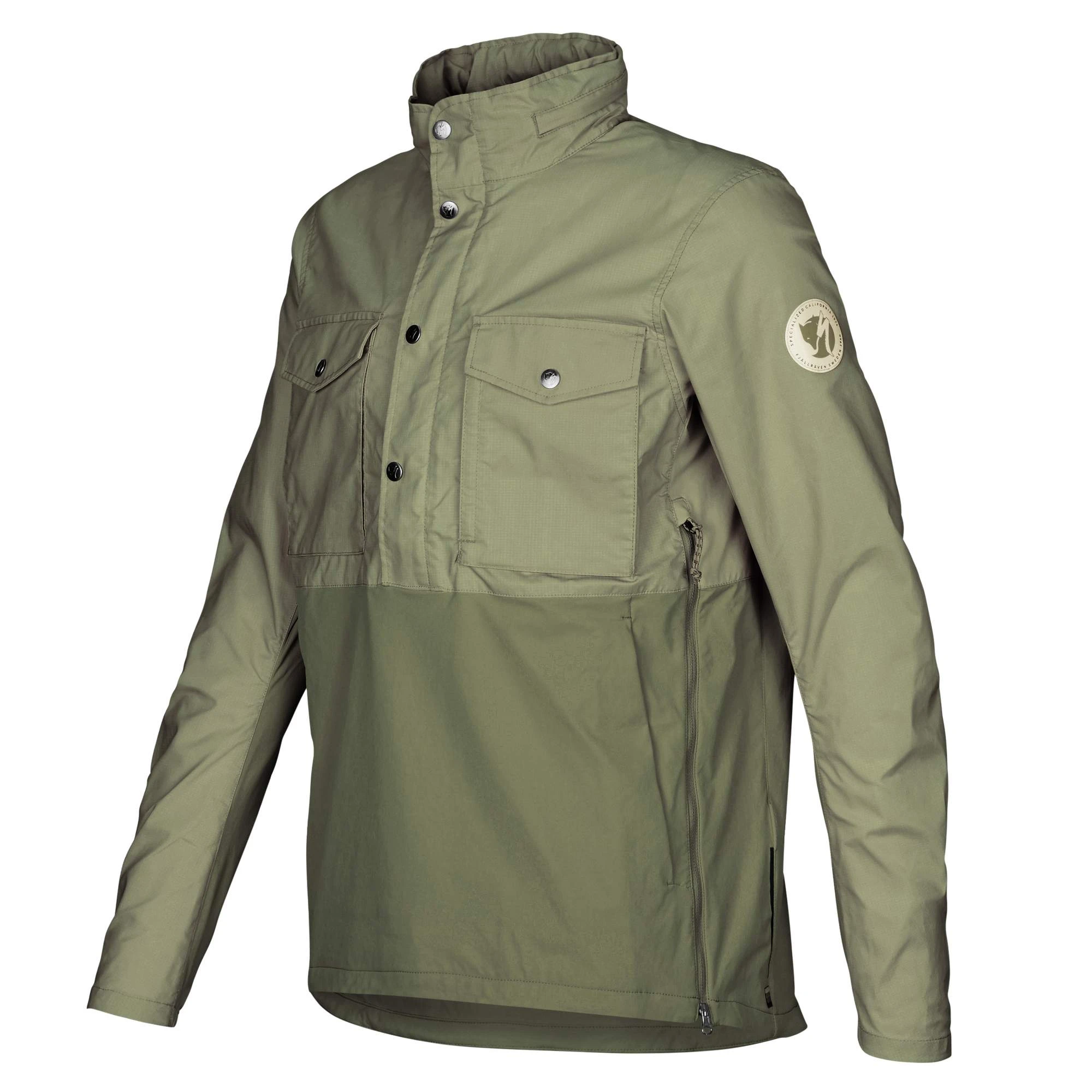 Schöne Schlupfjacke mit Stretchanteil, gemacht fürs Fahrrad: Der S/F Räven Anorak M ist aus nachhaltigem, gewachstem G-1000 Lite Eco Stretch und einem elastischen 4-Wege-Stretch-Material gefertigt.