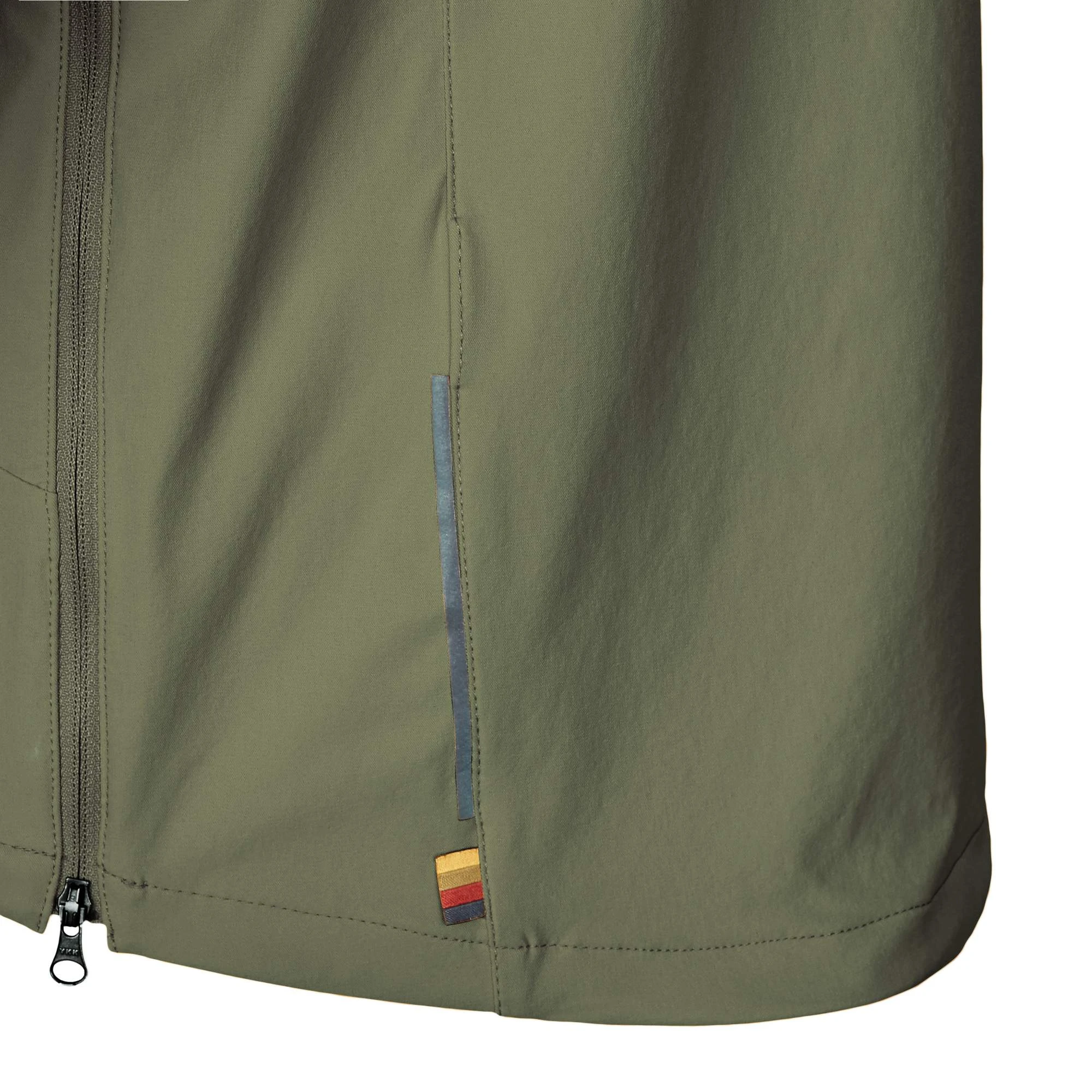 Das gibt der Jacke auf dem Rad einen perfekten Sitz und auch auf langen Etappen ein stets angenehmes Klima. Lange 2-Wege-Reißverschlüsse seitlich am Rumpf erleichtern das Hineinschlüpfen in den S/F Räven Anorak M und dienen der Ventilation unterwegs, wenn es dir doch mal zu warm wird. Das elastische Nylonmaterial am Bauch hält dir kühlen Fahrtwind vom Leib. Den Stehkragen kannst du schützend hoch mit einem RV zuziehen; der Kragen beherbergt auch die dünne, einstellbare Kapuze, die prima unter deinen Fahrradhelm passt.