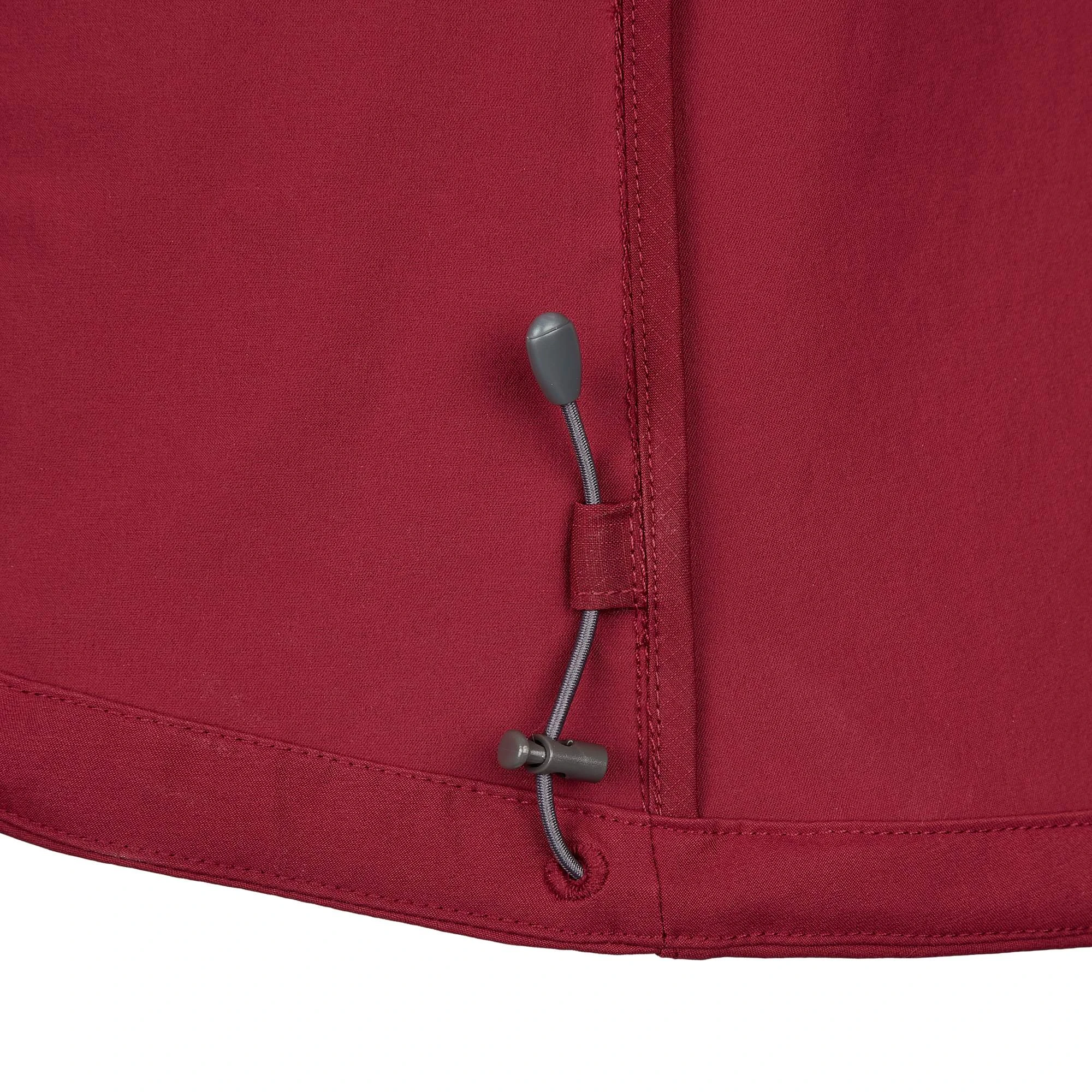 Das gibt der Jacke auf dem Rad einen perfekten Sitz und auch auf langen Etappen ein stets angenehmes Klima. Lange 2-Wege-Reißverschlüsse seitlich am Rumpf erleichtern dir das Hineinschlüpfen in den S/F Räven Anorak W und dienen der Ventilation unterwegs, wenn es dir doch mal zu warm wird. Das elastische Nylonmaterial am Bauch hält dir kühlen Fahrtwind vom Leib. Den Stehkragen kannst du schützend hoch mit einem RV zuziehen; der Kragen beherbergt auch die dünne, einstellbare Kapuze, die prima unter deinen Fahrradhelm passt.