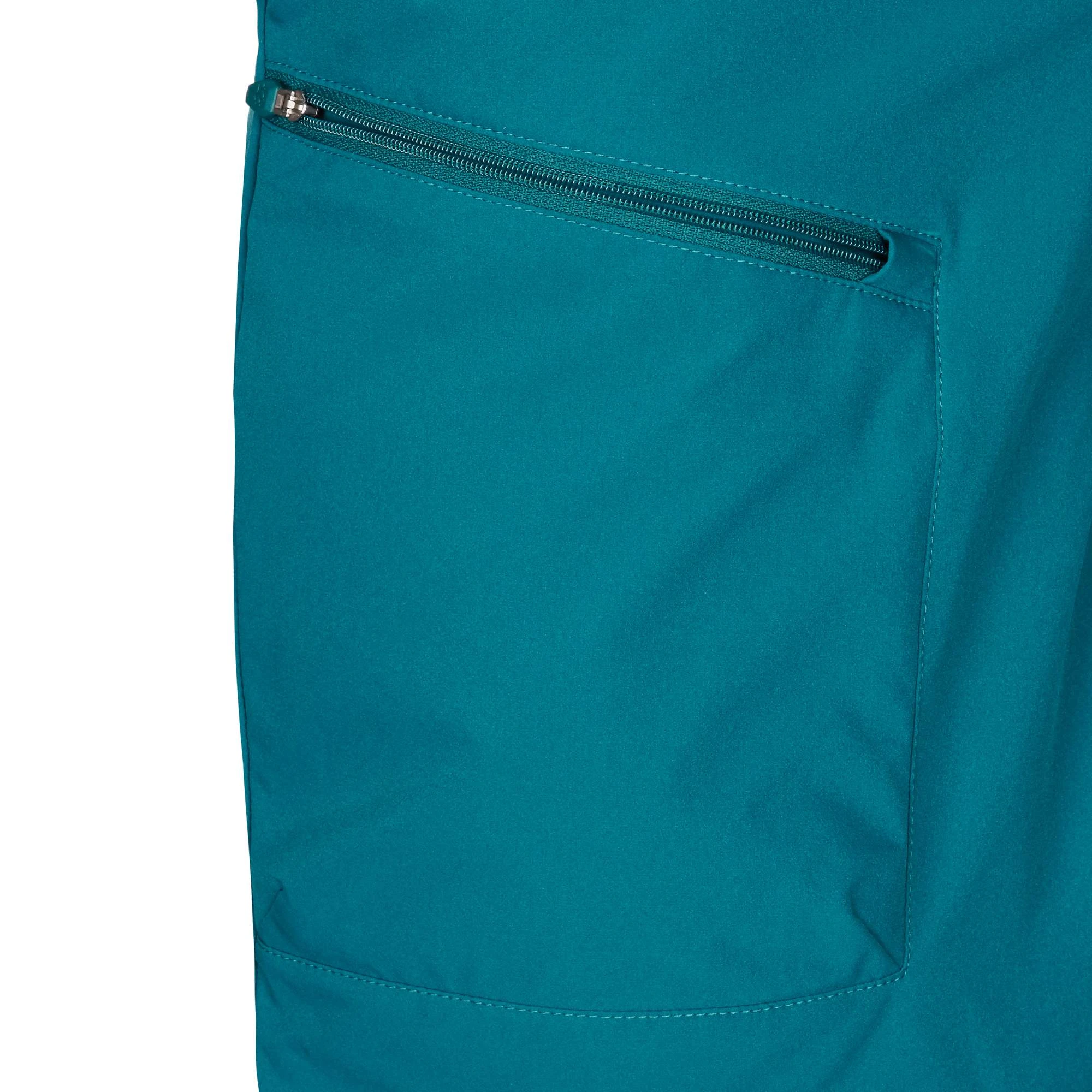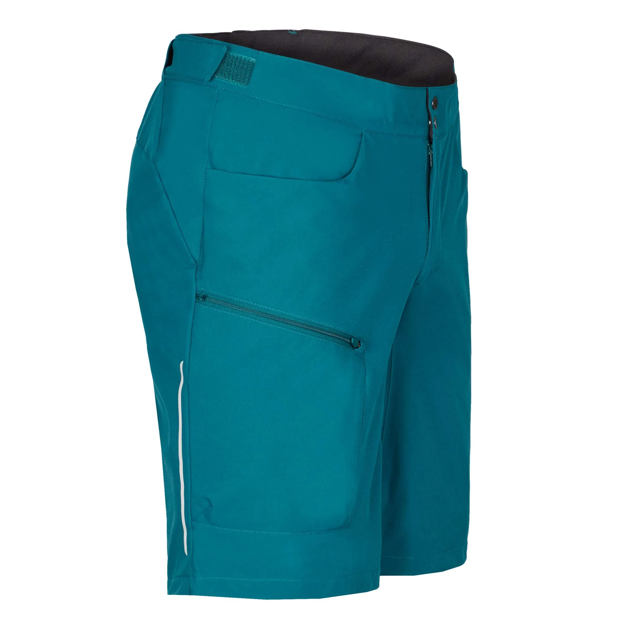 Unangenehme Gerüche nehmen die Fahrradshorts nur langsam an, da sie mit der S-Fresh-Ausrüstung versehen sind. Zudem wirkt ihr Material leicht kühlend. Für einen komfortableren Sitz sorgt der per Klettriegel verstellbare Hosenbund. Platz für die wichtigsten Habseligkeiten bieten die beiden Einschubtaschen sowie die RV-Beintasche.